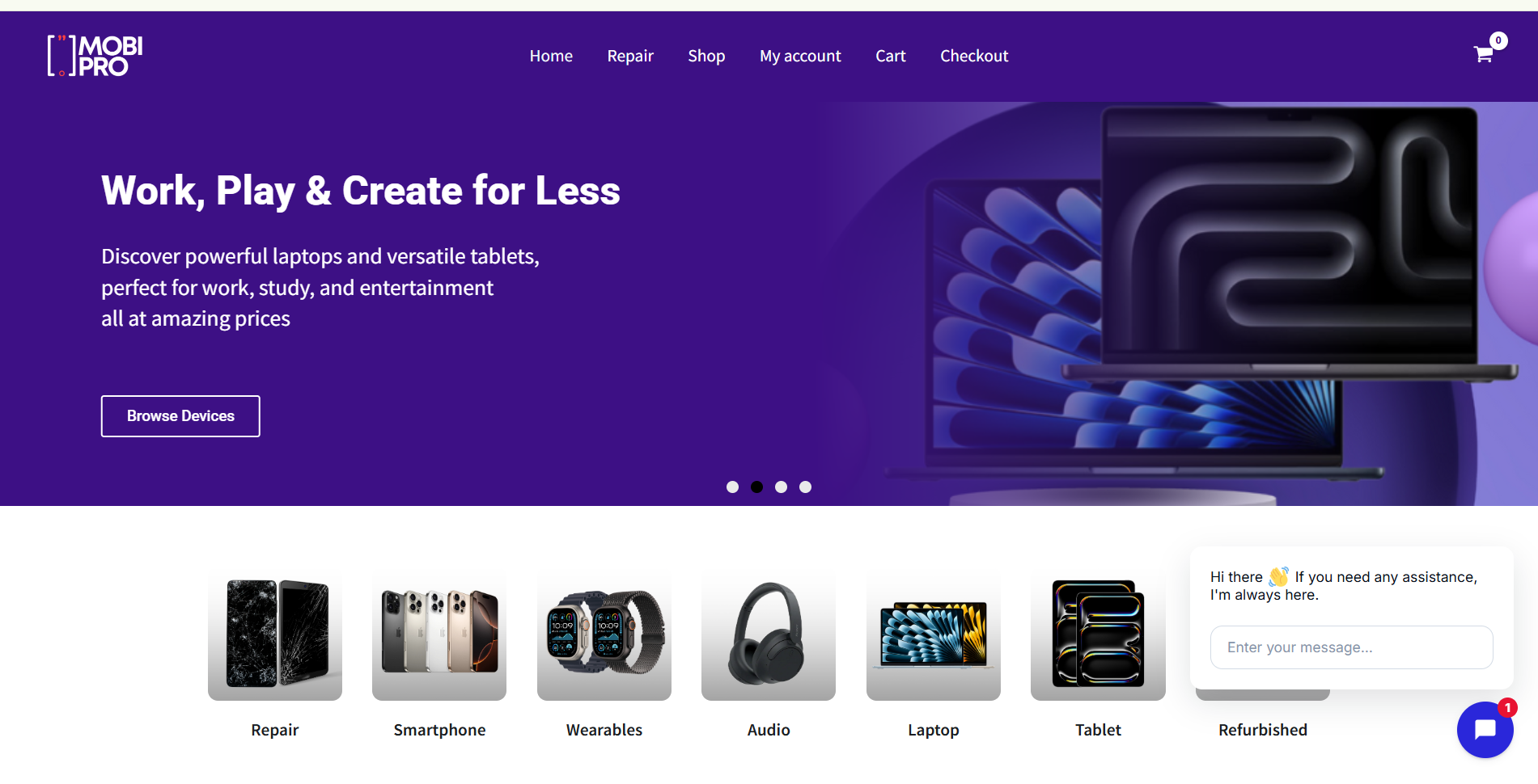 A sleek, user-friendly website built for a mobile sales and repair shop—designed to showcase products, streamline service bookings, and drive walk-in and online traffic with ease.