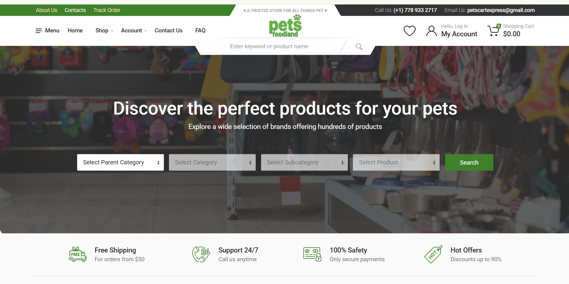 A vibrant and easy-to-navigate website built for a pet food shop—designed to showcase products, manage inventory, and help pet owners find the perfect nutrition for their furry companions.